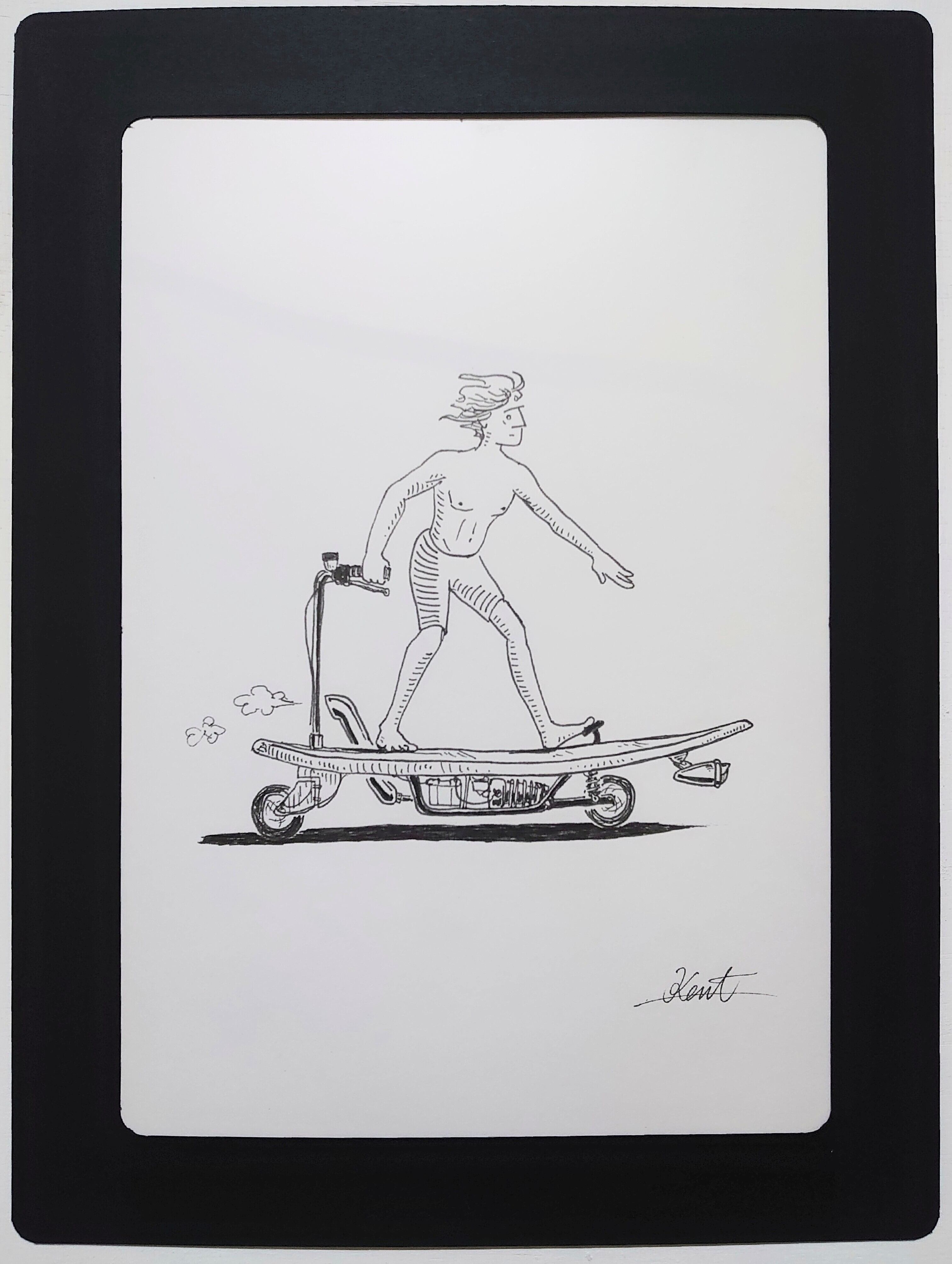 イラスト原画 サーファーの陸上生活